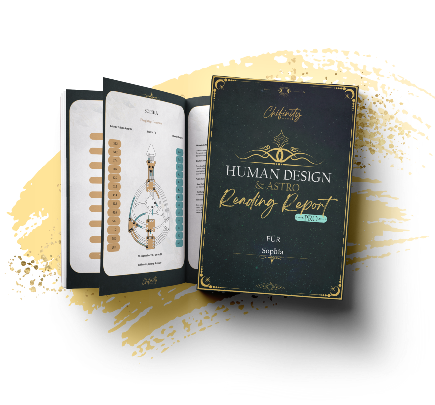 Aber das ist noch nicht alles. Dieser Report bietet dir nicht nur tiefe Einblicke in deinen Energie-Typ, deine Strategie und deine innere Autorität – er liefert dir einen präzisen Plan, wie du deine Lebensaufgabe aktiv umsetzt und auf Erfolgskurs bringst.